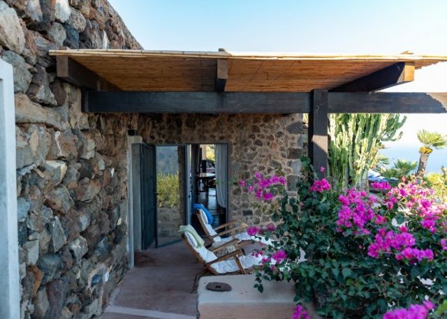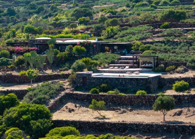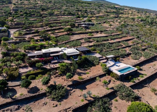 Si compone di due camere da letto matrimoniali ricavate da dammusi antichi e due bagni con doccia. L'ampia zona living arredata con salotti e la zona pranzo sono luminose grazie alle aperture a vetri dal quale è sempre visibile il blu del mare. All'esterno sono tanti i terrazzi arredati con amache, dormuse, salotti, con lettini prendisole ed il patio esterno presenta anche una seconda cucina ed un ulteriore tavolo per le cene d'estate all'aperto.