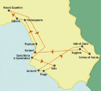 Il percorso è stato ideato per approfondire la storia antica del territorio, risalendo così ai tempi quando queste terre erano avamposti di frontiera: Pontecagnano era il confine più a sud degli Etruschi, lungo il fiume Sele; le antiche Paestum e Velia erano colonie magno-greche; mentre l’entroterra campano era abitato dalla popolazione italica dei Sanniti.