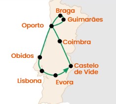 Da Lisbona a Porto alla scoperta di città patrimonio dell'umanità, piccoli paesi sull'oceano Atlantico, spiagge e la magnifica regione dei vigneti sul fiume Douro, tra "quintas" (cantine) e panorami.