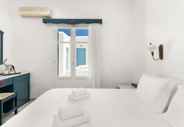 Situato direttamente sulla splendida spiaggia di Logaras, il Paros Inn Seafront è una struttura accogliente che coniuga alla perfezione semplicità cicladica e comfort moderni. La posizione è sicuramente uno dei suoi punti di forza perfetta per esplorare le meraviglie di Paros. Piso Livadi, raggiungibile in pochi minuti, è un piccolo villaggio di pescatori con un caratteristico porticciolo, ricco di taverne tradizionali, bar sul mare e percorsi costieri da cui ammirare tramonti indimenticabili. La spiaggia antistante, pulita e tranquilla, invita a lunghe giornate di relax tra bagni rinfrescanti e sole dorato.